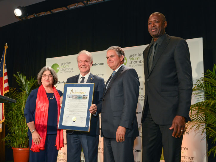 Past award recipients are: Carlos A. Migoya , 2017; Dr. Phillip & Patricia Frost, 2016; Harve A. Mogul, 2015; Donna Shalala, 2014; Gloria & Emilio Estefan, 2013; Eduardo J. Padrón, 2012; Peter J. Dolara, 2011; Modesto A. Maidique, 2010; Adolfo Henriques, 2009; Sherwood M. “Woody” Weiser, 2008; Jayne and Leonard Abess, 2007; Jorge M. Pérez, 2006; Carlos J. Arboleya, 2005; William O. Cullom, 2004; Armando Codina, 2003; Susan and Leonard Miller, 2001; Edward T. Foote II, 2000; Sister Jeanne O’Laughlin, 1999; Robert H. Traurig, 1997; Jim Batten, 1995; Dante Fascell, 1994; William Lehman, 1993; M. Anthony Burns, 1991; Martin Fine, 1990; Ted Hoepner, Jr. and Leslie Pantin, Sr. (posthumously), 1989; R. Ray Goode, 1988; Luis Botifoll, 1987; Bill Colson, 1986; Hank Meyer, 1985; Charles I. Babcock, Jr., 1984; Alvah H. Chapman, Jr., 1983; Harry Hood Bassett, 1982; and Lester Freeman, 1981.