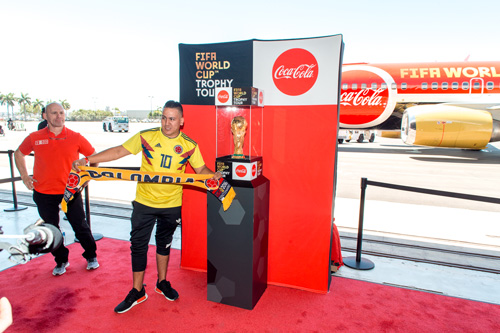 Coca-Cola is helping commemorate the 2018 FIFA World CupTM with a nationwide trophy tour. On Tuesday, April 17, the FIFA World Cup Trophy arrived in Miami via chartered plane for an exclusive event at Signature Flight Support (MIA). The plane was welcomed by a water canon salute and live Latin band. Attendees were the first and only group to see the branded plane as part of the U.S. tour. This marks the fourth time the company has brought the Trophy on tour as part of its longtime partnership with FIFA. Coca-Cola has been a global partner of FIFA since 1974. Please let me know if you’re able to include in the upcoming issue.