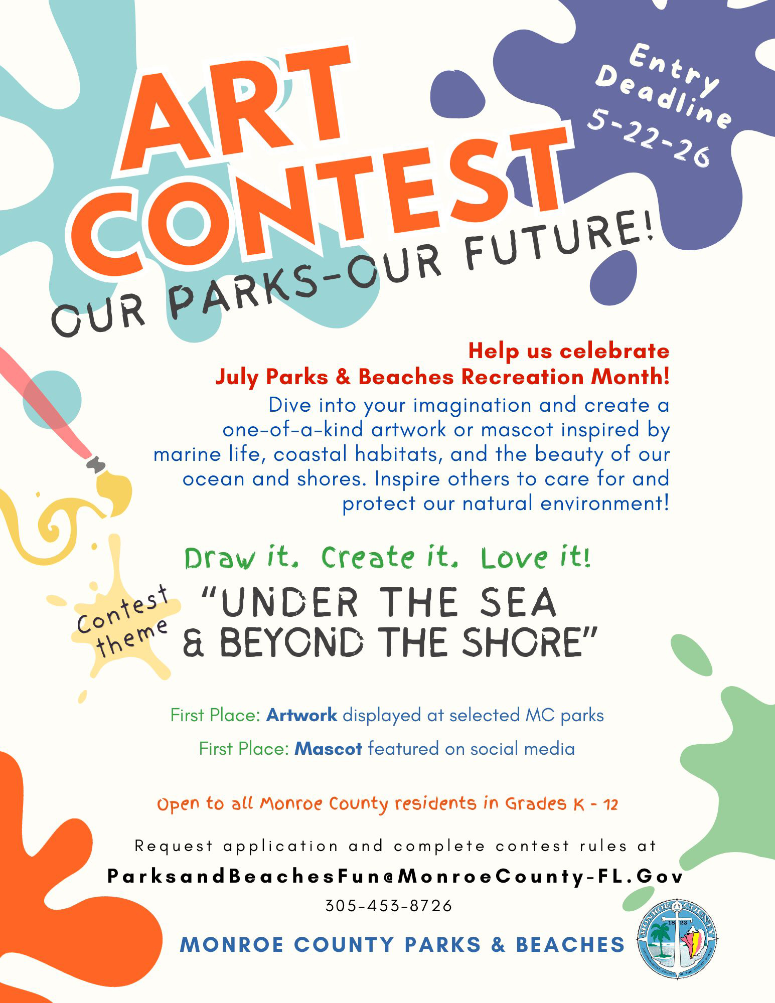 Students, parents, and guardians can request an application and review full contest rules by contacting ParksandBeachesFun@MonroeCounty-FL.gov or calling 305-453-8726. The application and rules are also available at www.monroecounty-fl.gov/artcontest.